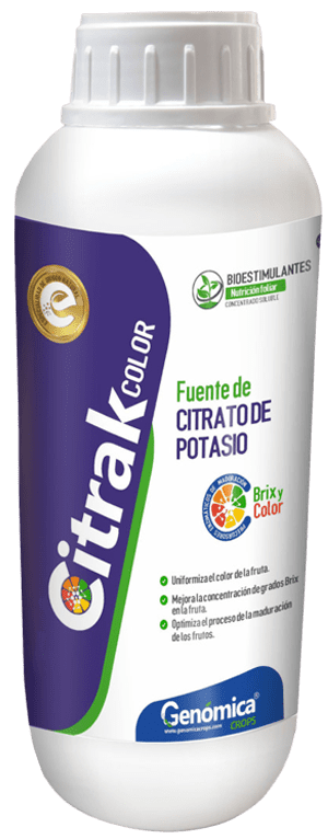 Citrak Color, es un precursor enzimático de la maduración que actúan potenciando ciertas enzima específicas de la maduración, como la glucosa, flavonoide, glucosil transferasa, más conocido como la UFGT, enzima que va a estabilizar el color de las frutas rojas, así mismo la presencia de los carbohidratos activos en su formulación de Citrak Color ayuda también mejorar paralelamente el brix de la fruta.